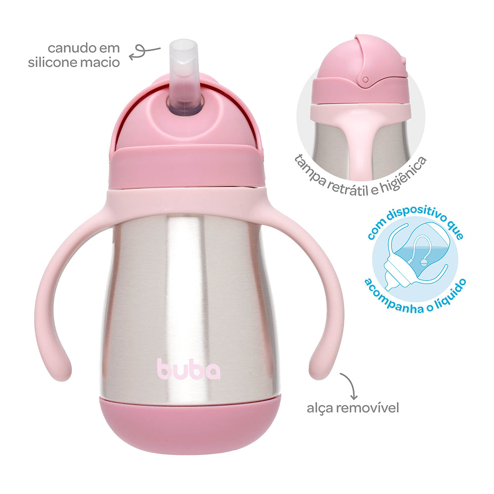 Copo Térmico Parede Dupla Com Alça Rosa Buba